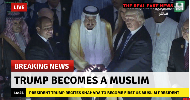 Mecca, Saudi Arabia: US President Donald Trump stunned the world tonight by reciting the first of the five pillars of Islam, the “Shahada” with Saudi King Salman becoming the very first US President to officially profess the Islamic faith.