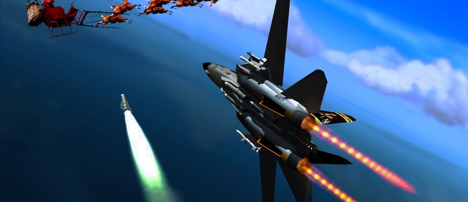 Elmendorf Air Force Base, Alaska: The USA launched an actual shooting war on Santa Claus when NORAD fighter jets fired air to air missiles at Santa, his sleigh and reindeer.